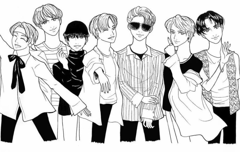 ![Раскраска группа БТС]()