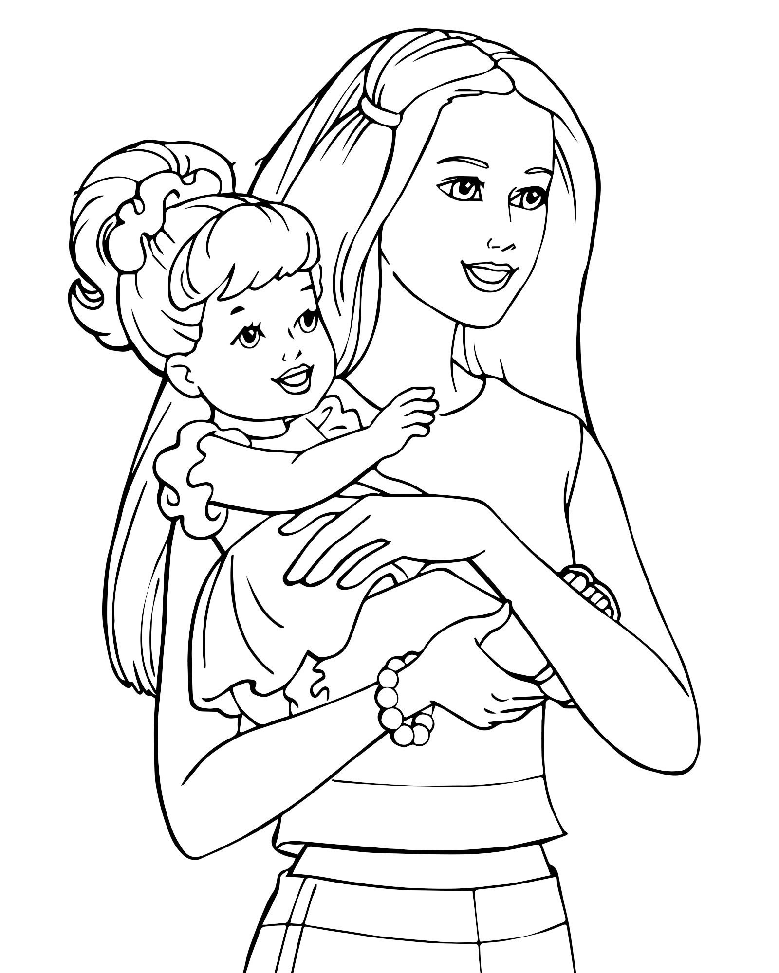 Раскраска Барби с дочкой