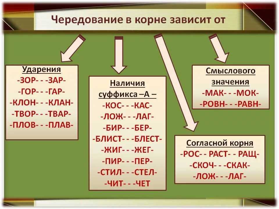 Правописание корней с чередованием 5 класс правило