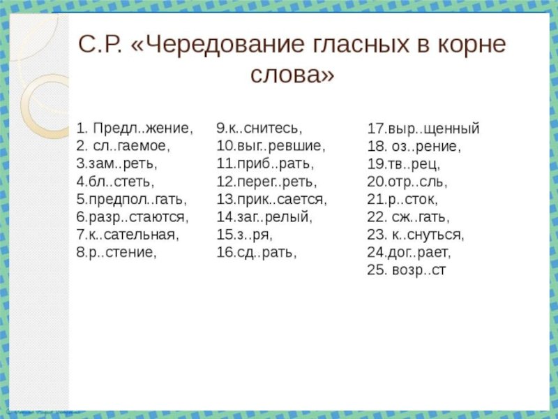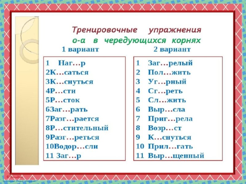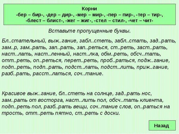 Чередующиеся гласные в корне слова упражнения