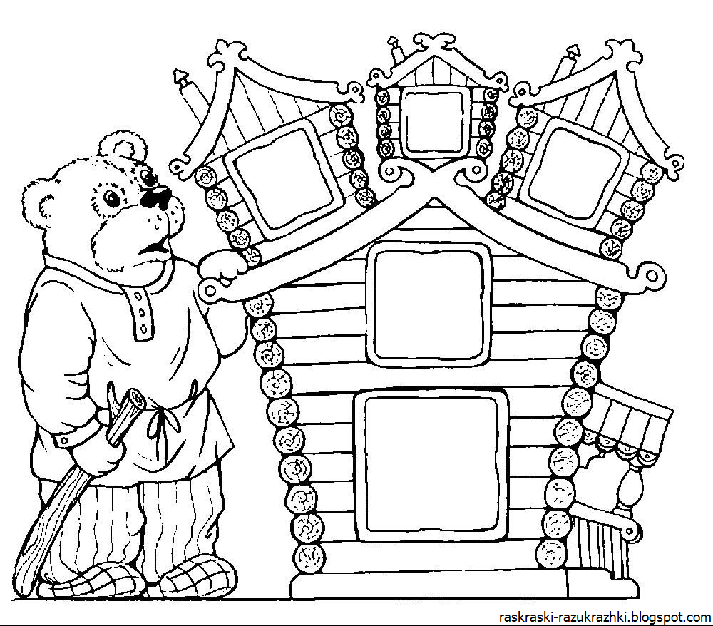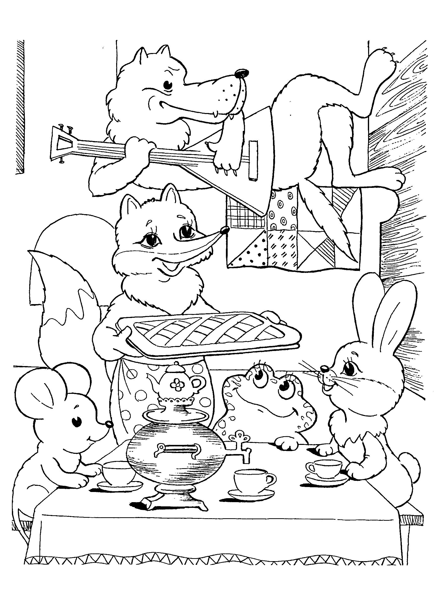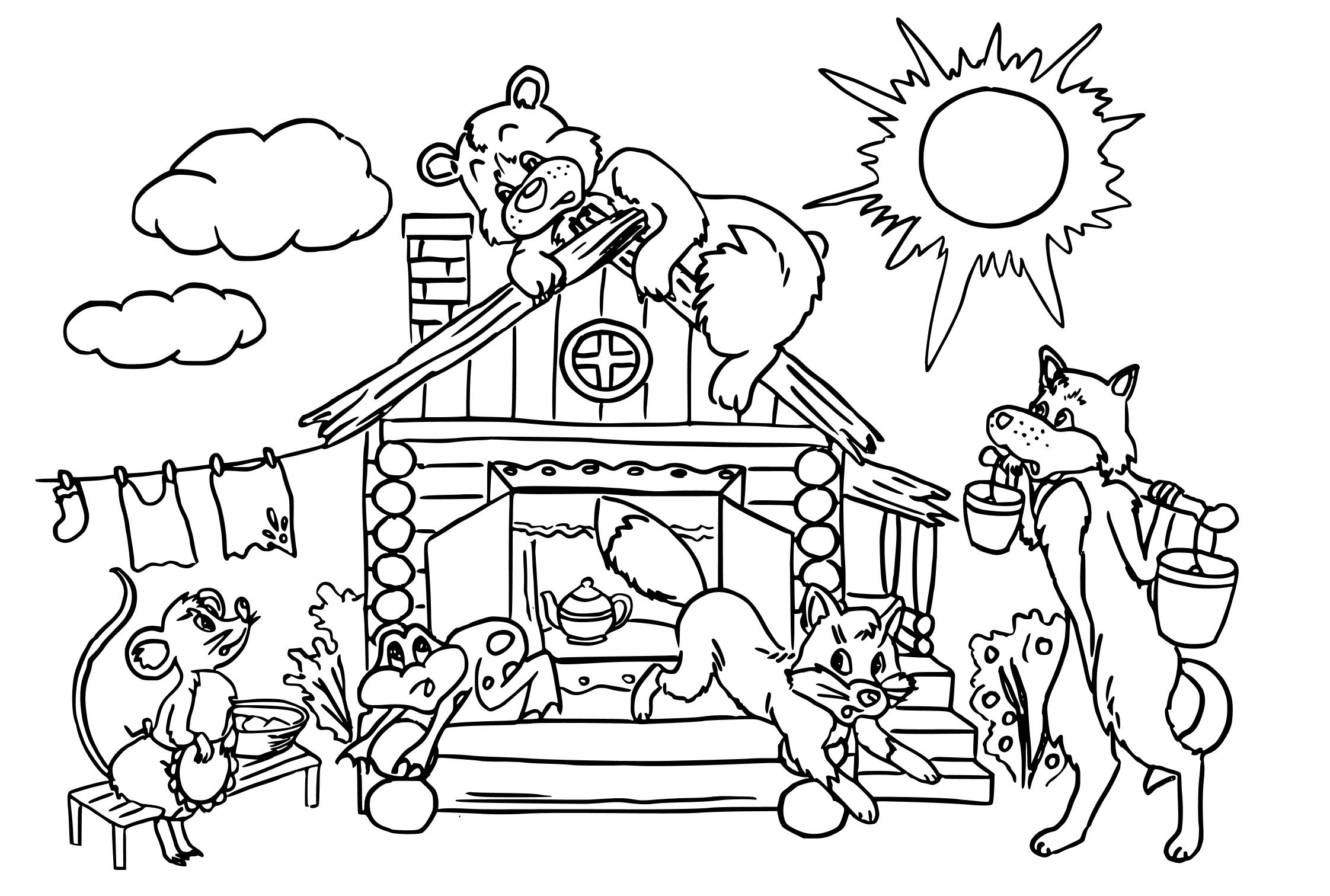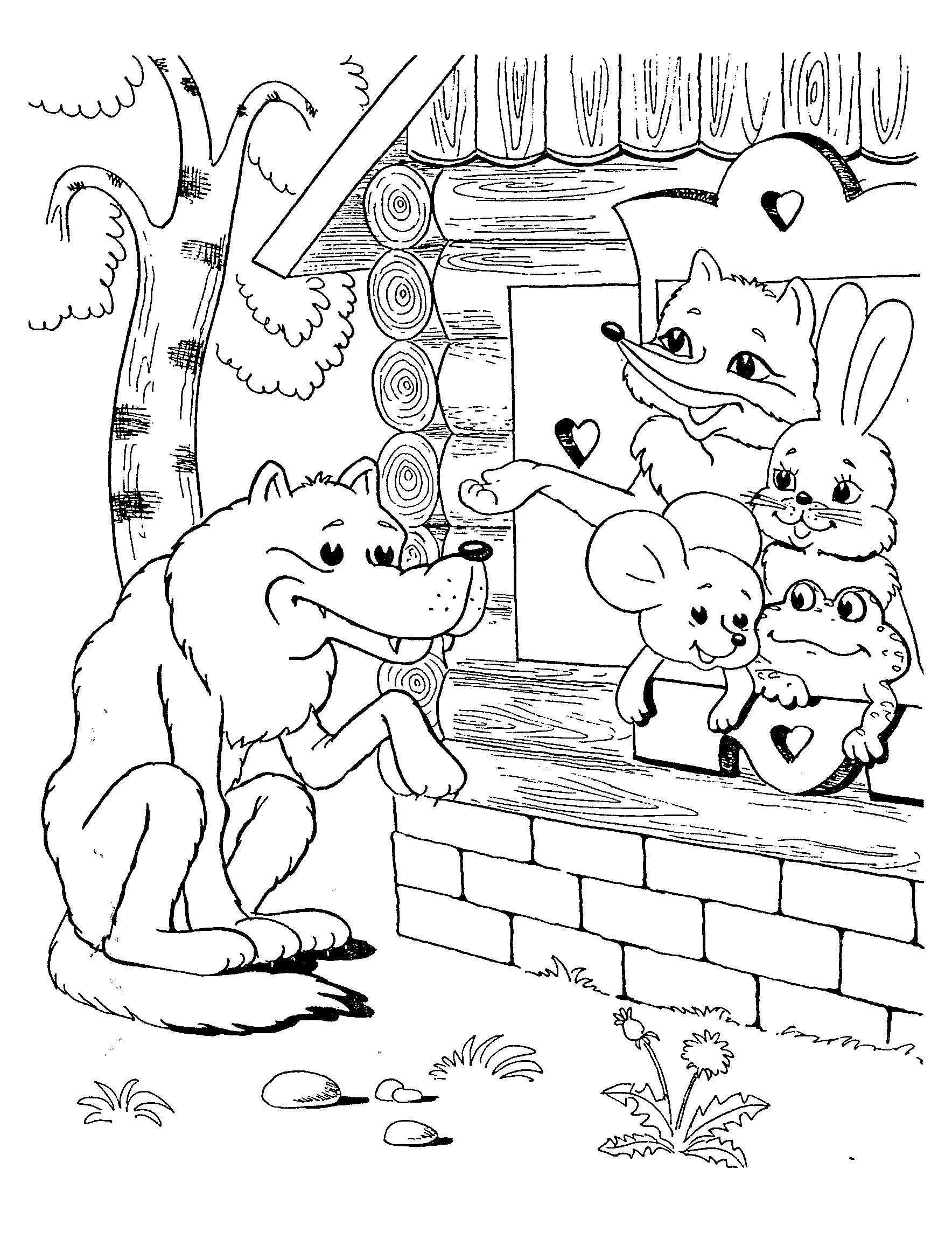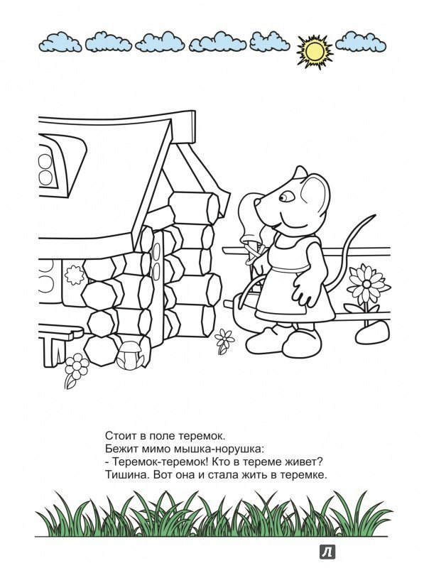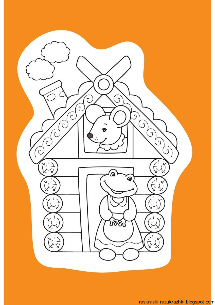![Терем-Теремок сказка иллюстрации для раскрашивания]()