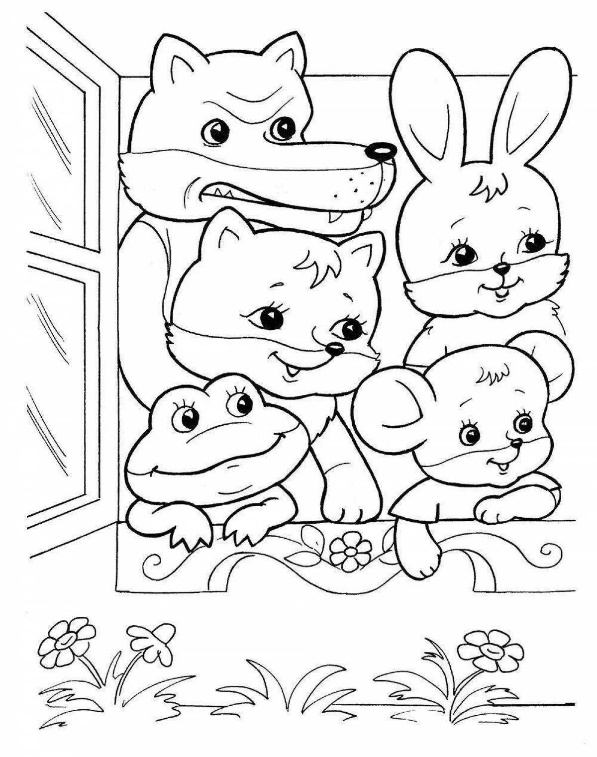 ![Раскраски к сказке Теремок для детей 3-4 лет]()