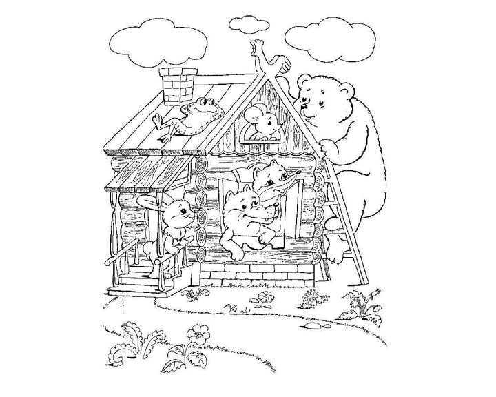 Терем-Теремок сказка иллюстрации для раскрашивания