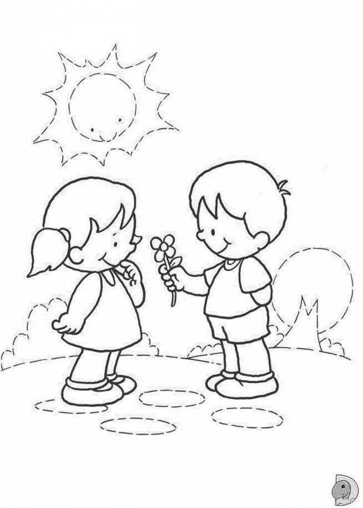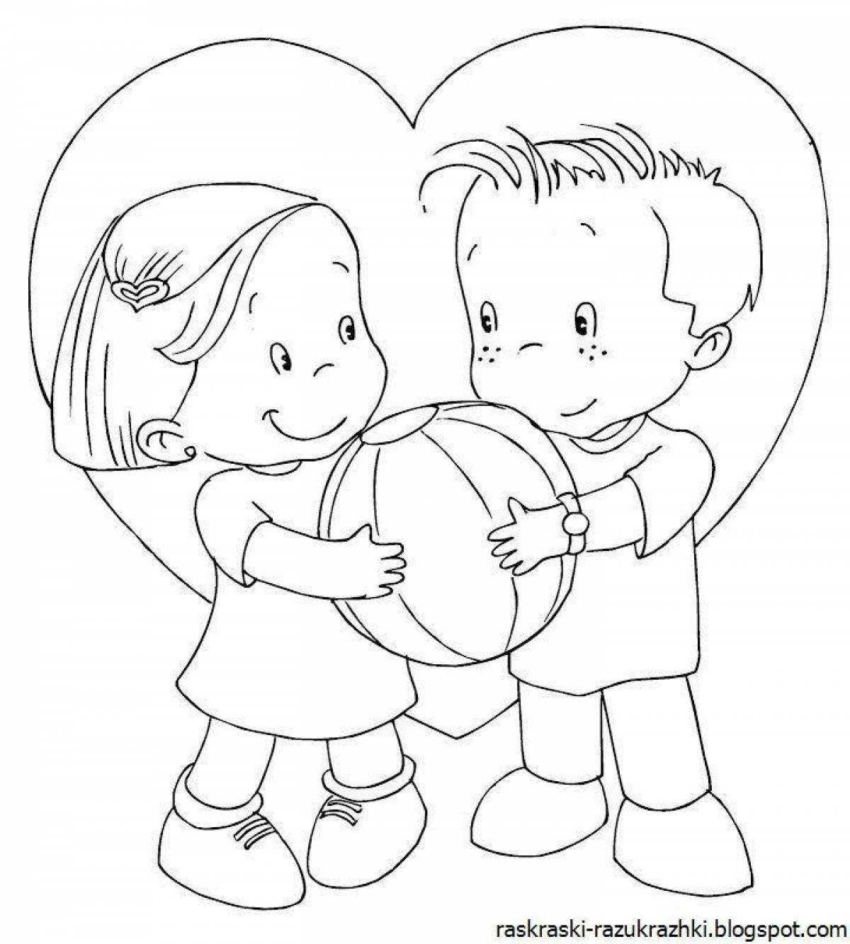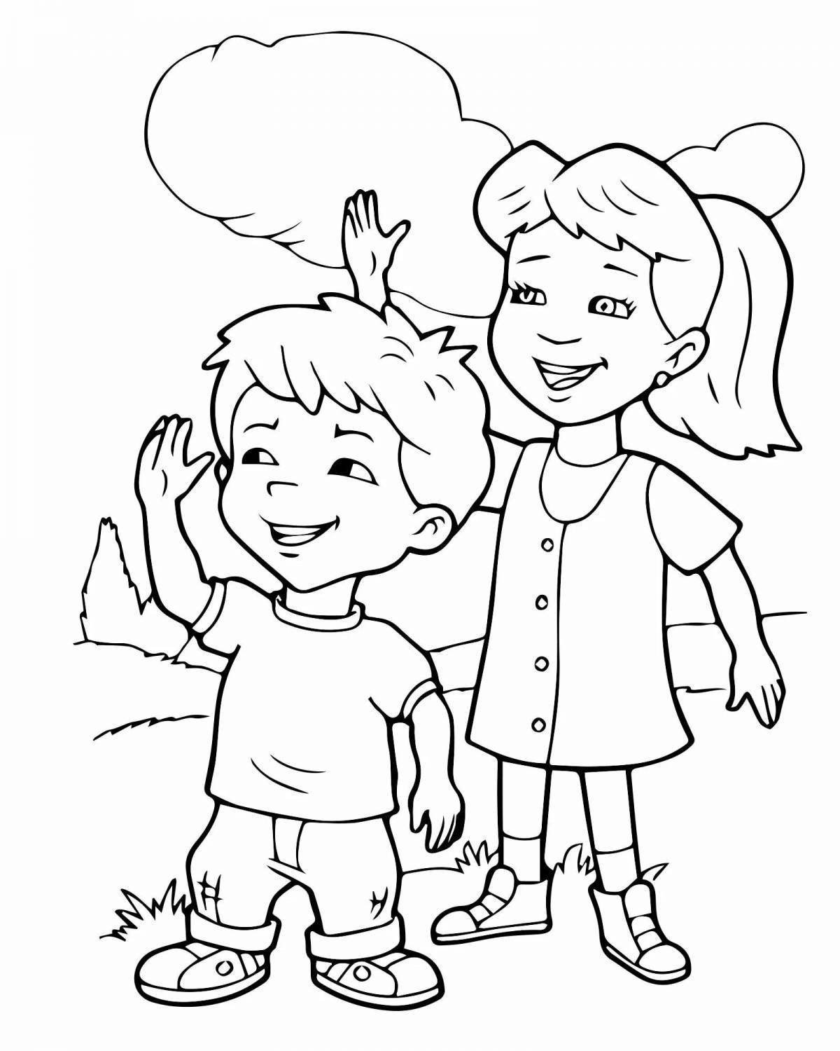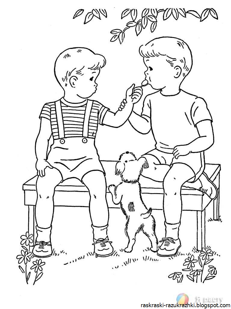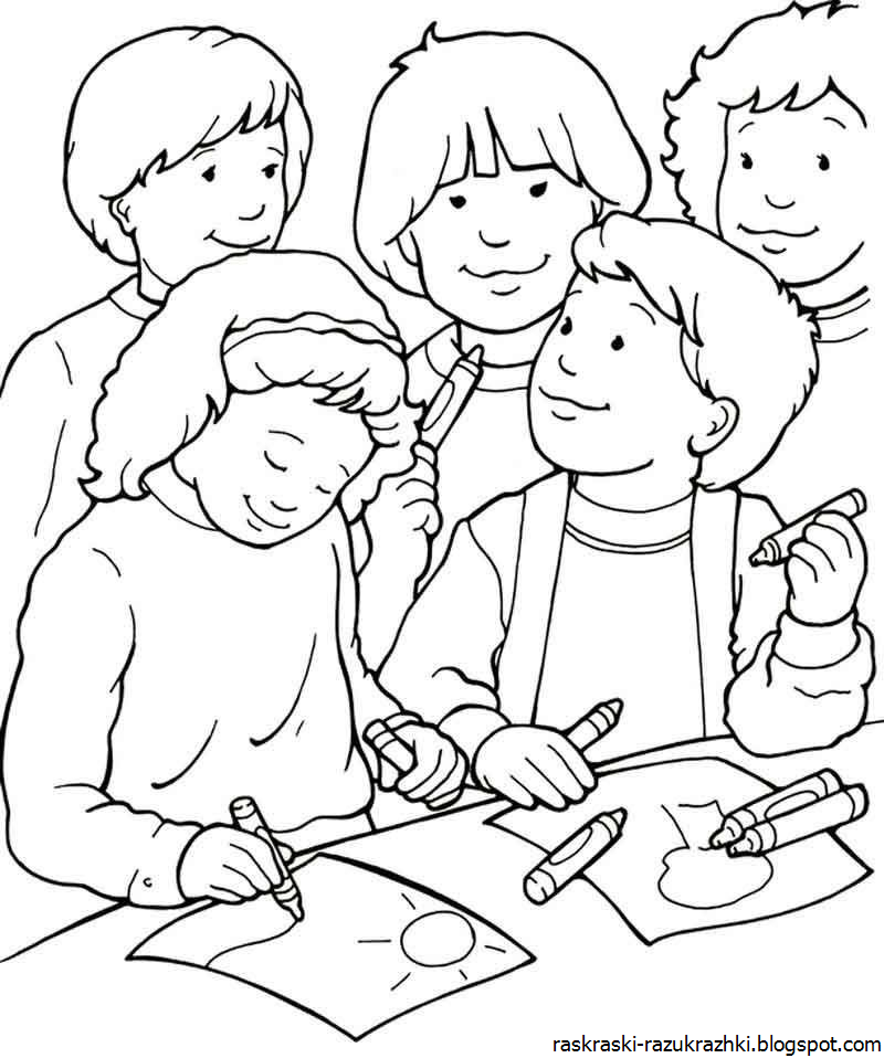 ![Раскраска дети дружат]()