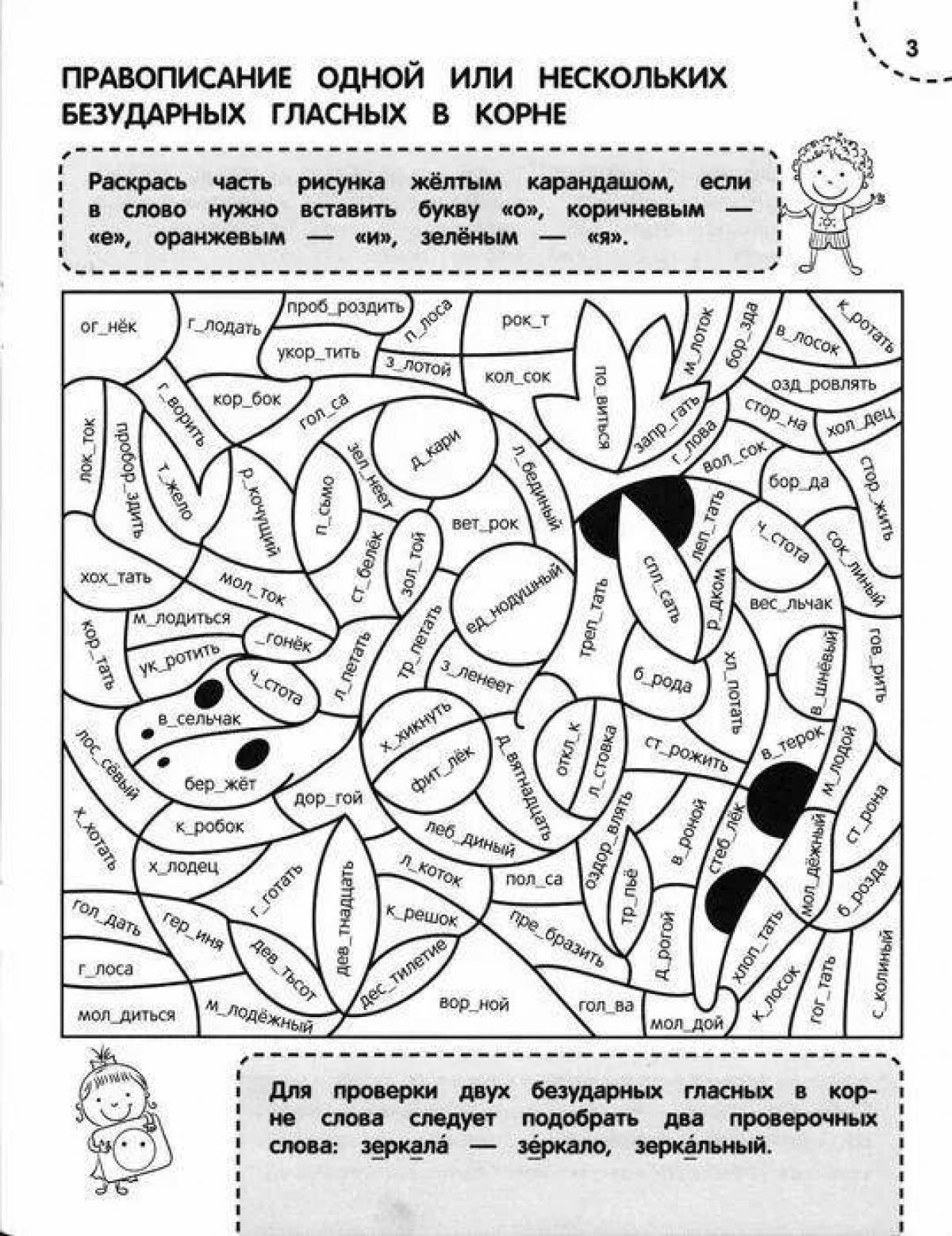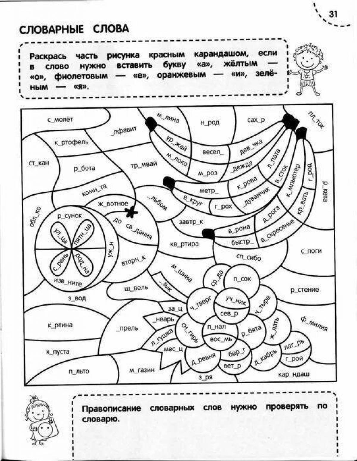 Раскраска 4 класс русский язык словарные слова