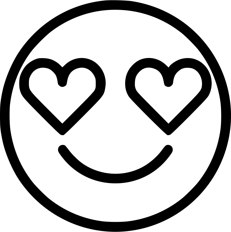 ![Смайлик с сердечками в глазах черно белый]()