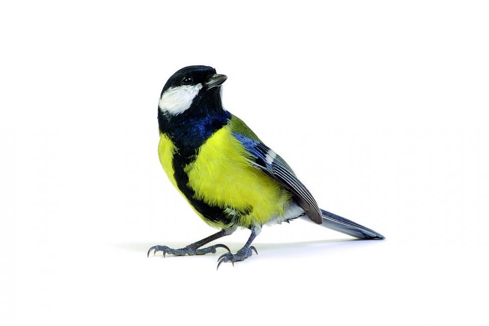 Синица птица на белом фоне