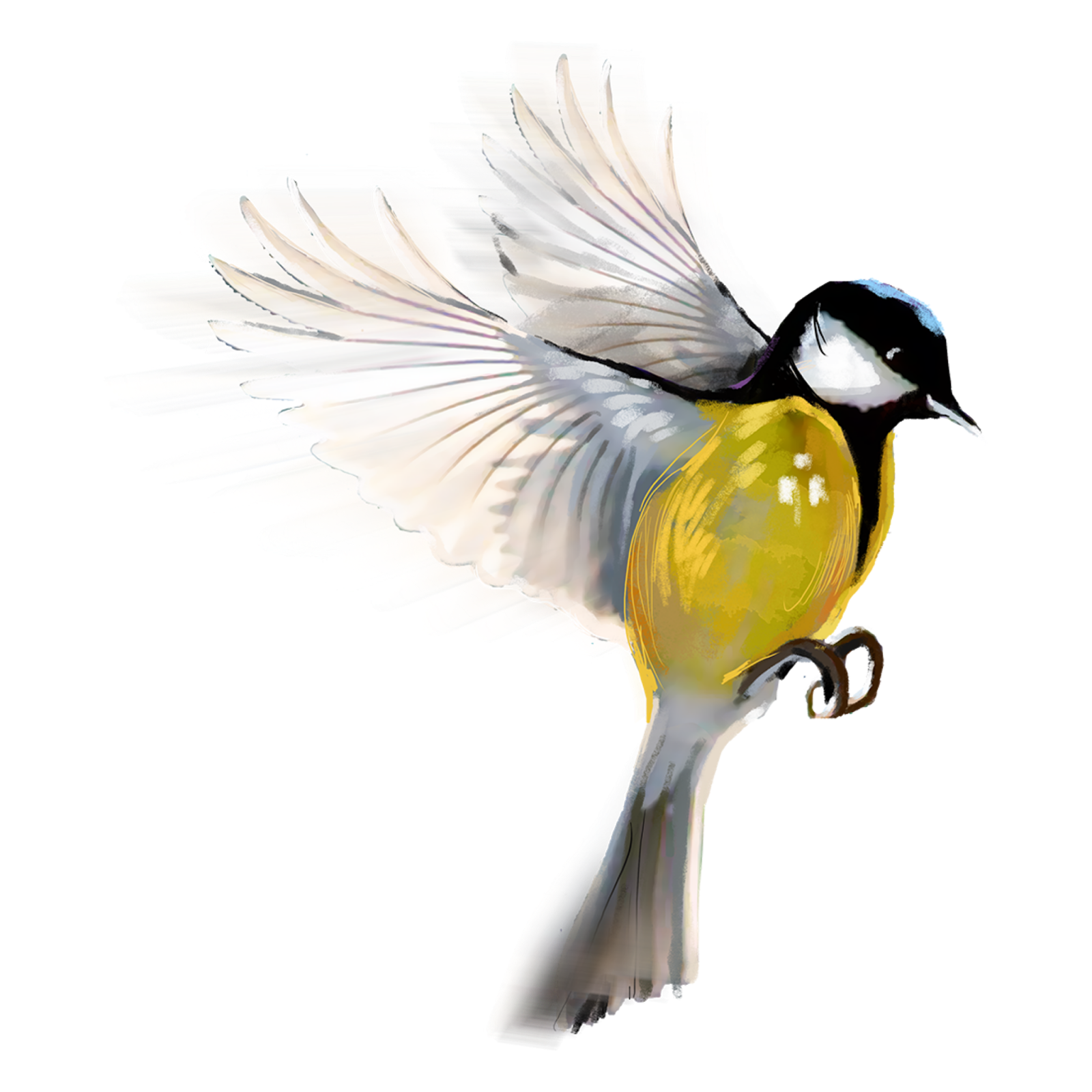 Синица в полете без фона