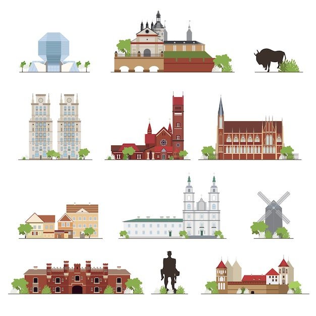 ![Беларусь достопримечательности вектор]()