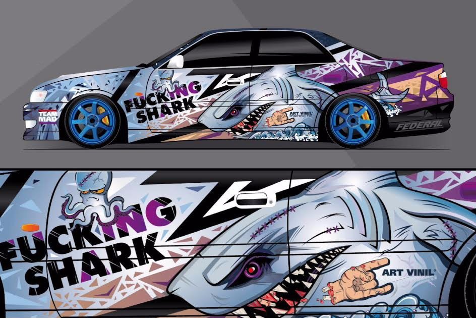 ![Дрифт акула винил на авто]()
