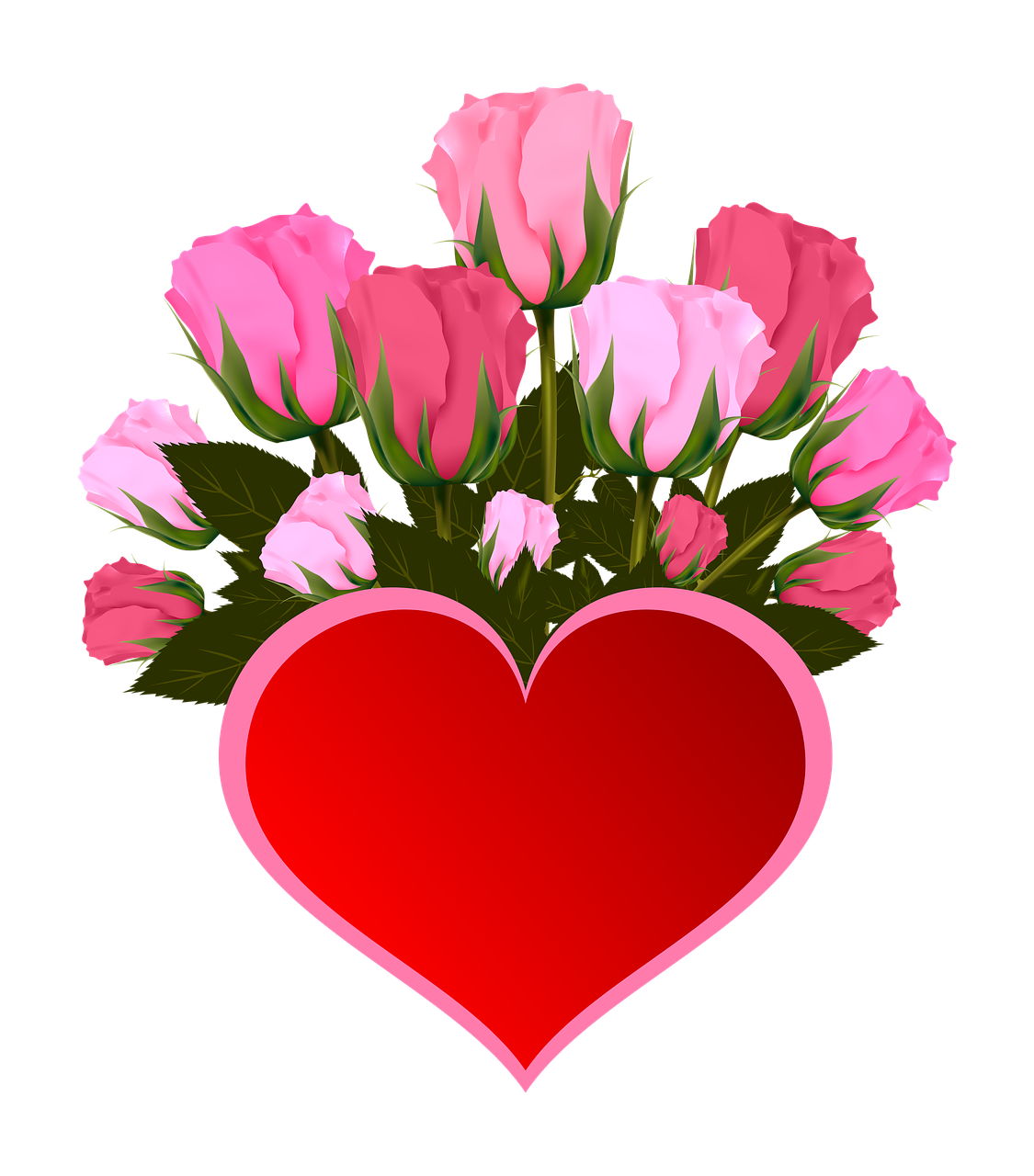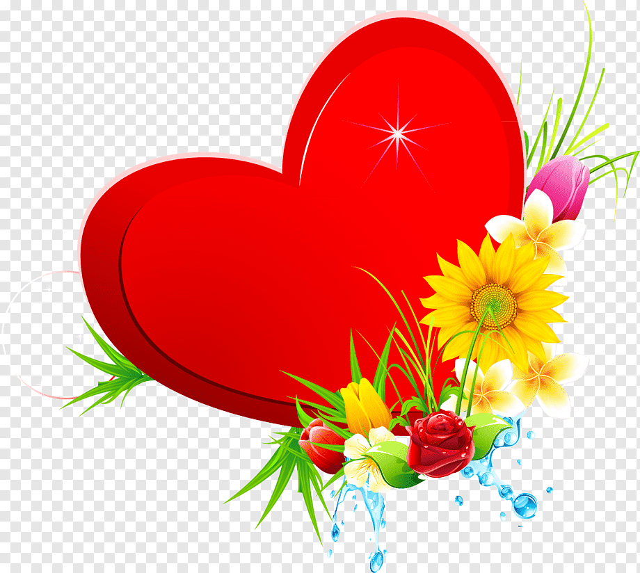 Сердце с цветами на прозрачном фоне
