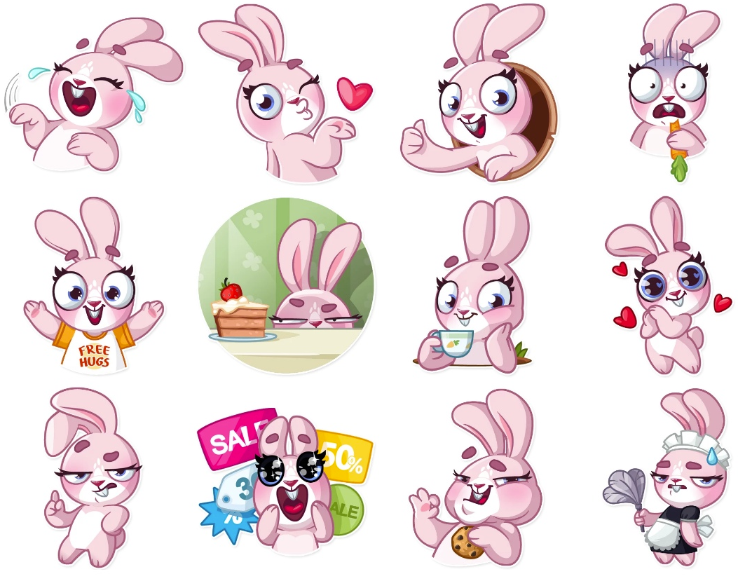 ![Кролики миленькие наклейки]()