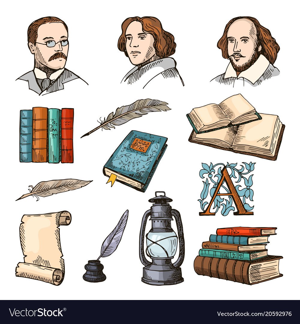 Атрибуты писателя вектор