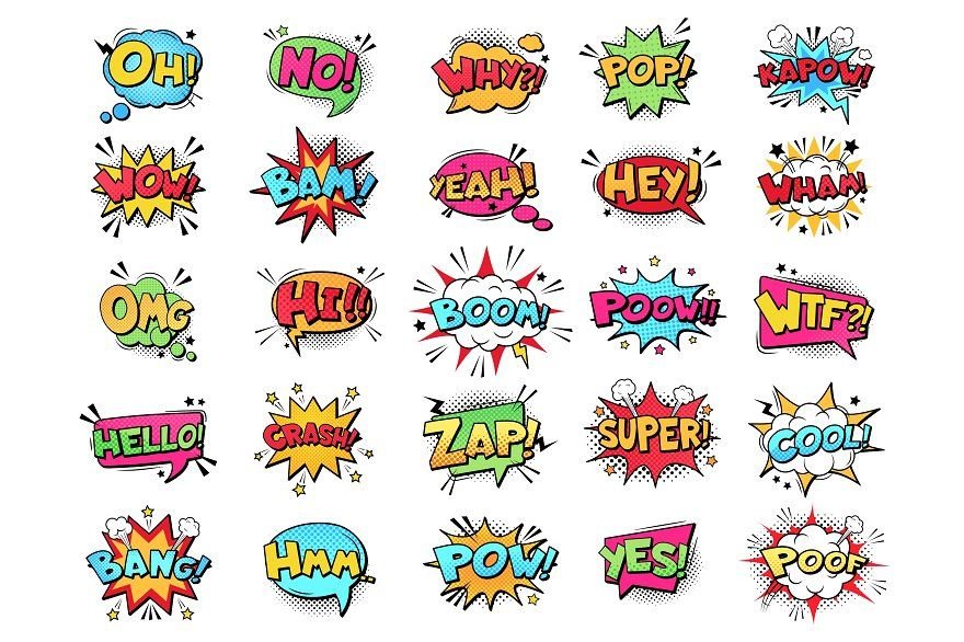 ![Надписи БАМ, бум, упс]()