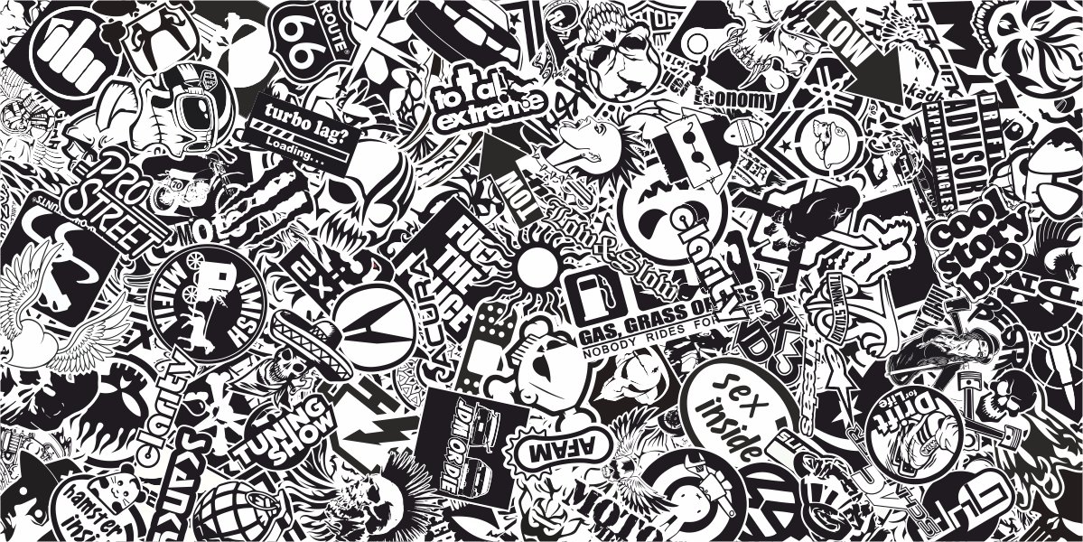 Стикер бум черно белый