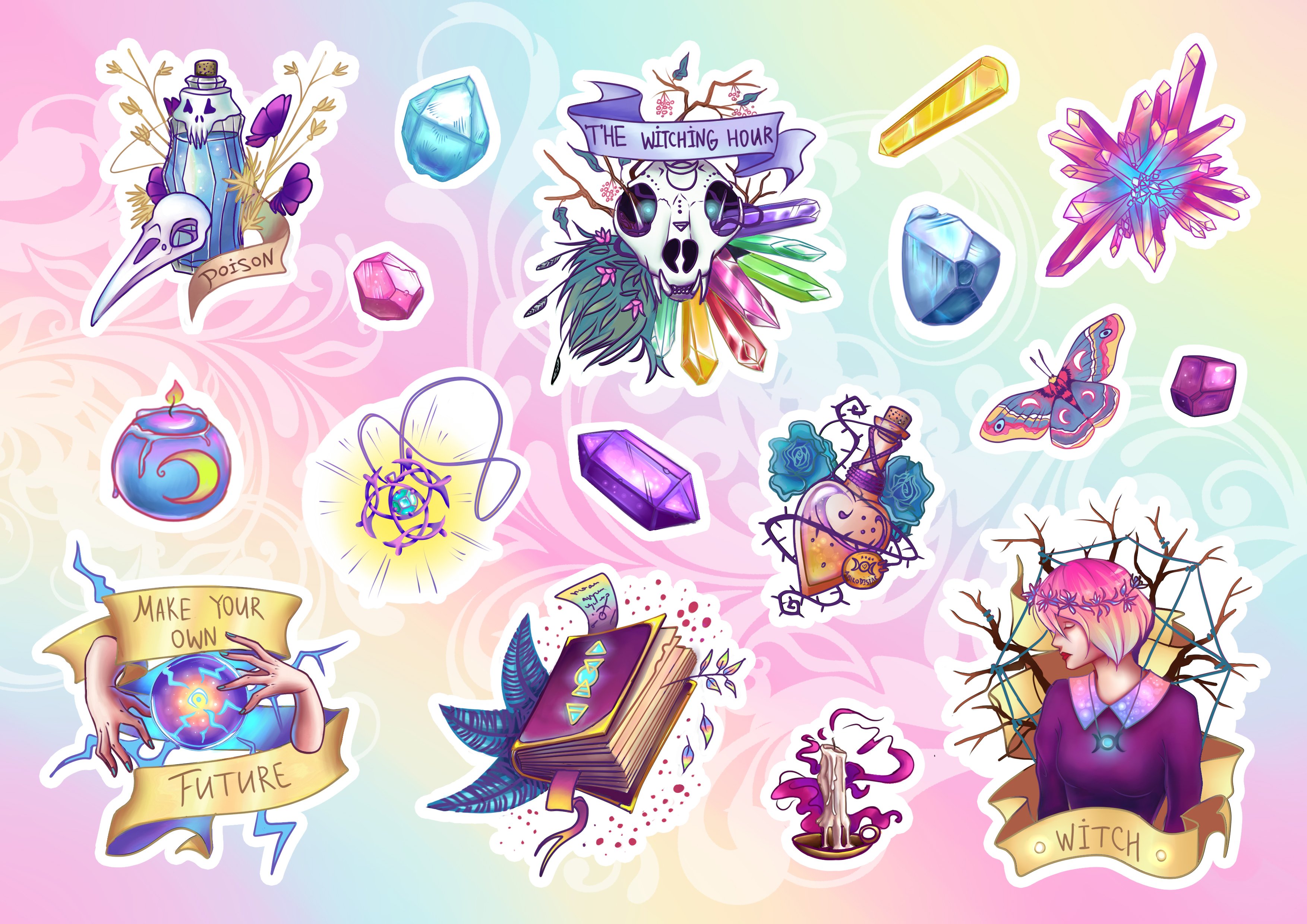 ![Наклейки в стиле ведьмочки]()