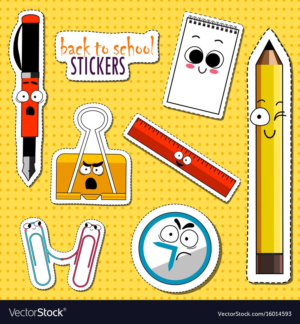 ![Наклейки в виде канцелярии]()