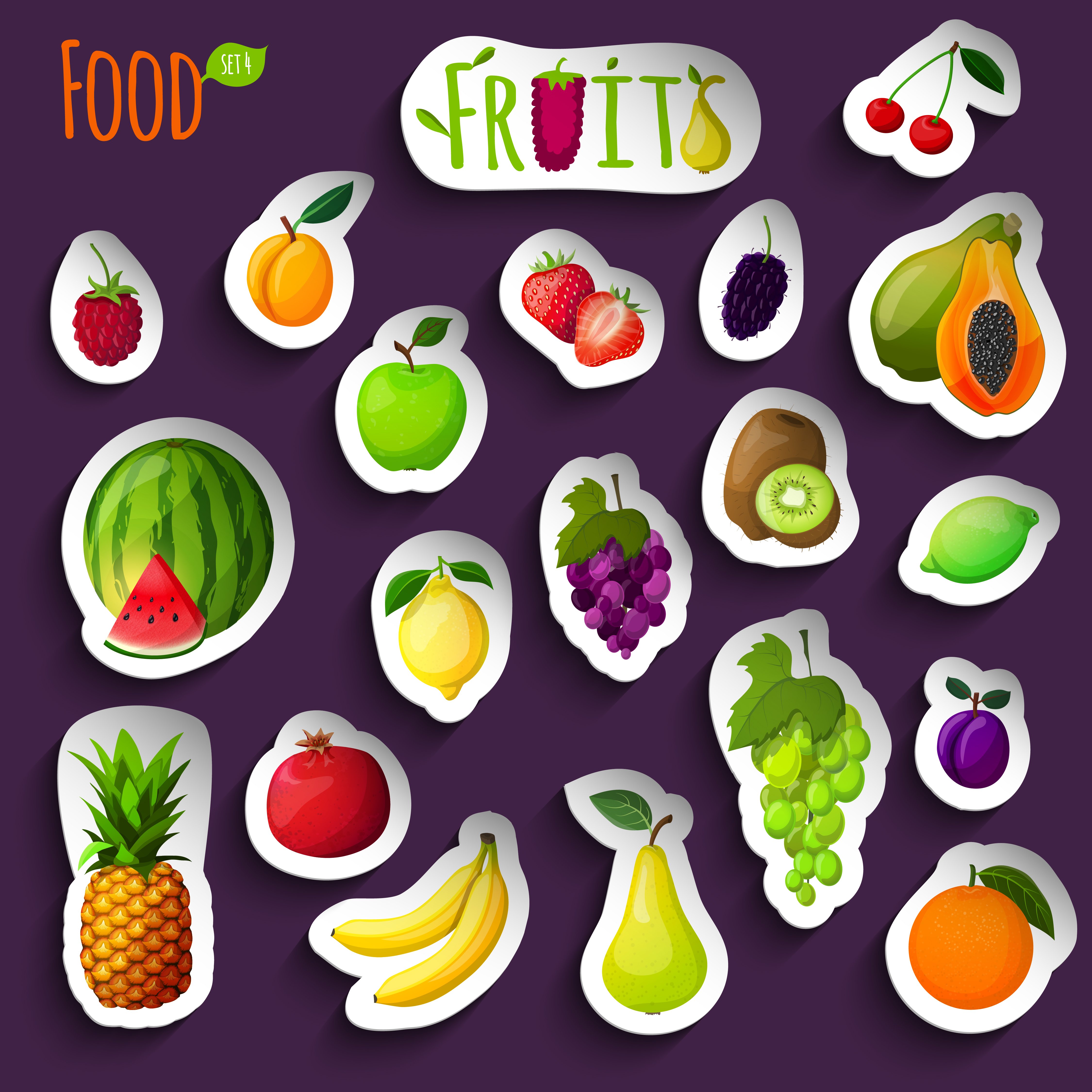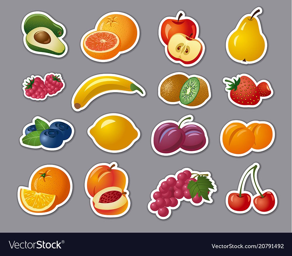![Фрукты наклейки вектор]()
