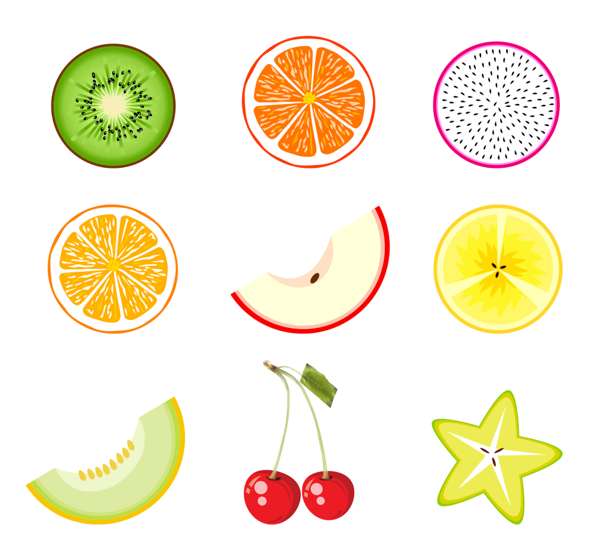 ![Дольки фруктов вектор]()