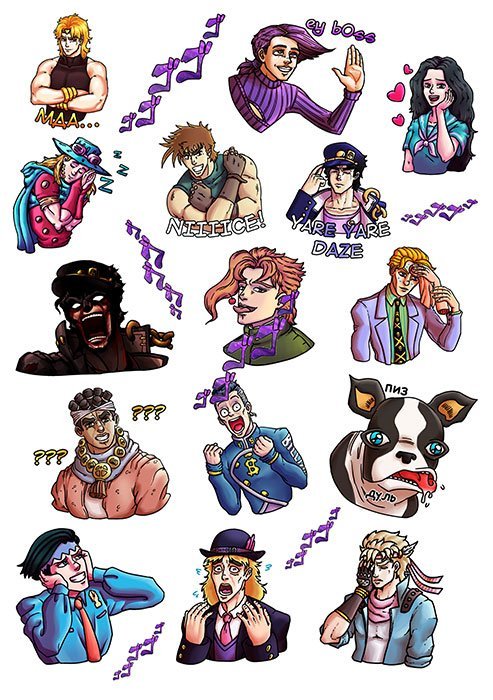Украсьте свои чаты и сообщения яркими и оригинальными стикерами Jojo! Откройте для себя коллекцию стикеров, вдохновленных популярной мангой и аниме-серией "Jojo's Bizarre Adventure". Эти стикеры привлекут внимание ваших друзей и добавят веселья к вашим разговорам. Выразите свои эмоции, используя персонажей, таких как Джонатан Джостар, Джозеф Джостар, Джотаро Куджо и многих других. Независимо от того, являетесь ли вы фанатом серии или просто любителем аниме, эти стикеры станут отличным дополнением к вашей коллекции и помогут вам выразить свою индивидуальность в цифровом мире. Поделитесь своими любимыми моментами из "Jojo's Bizarre Adventure" с помощью стикеров Jojo!
