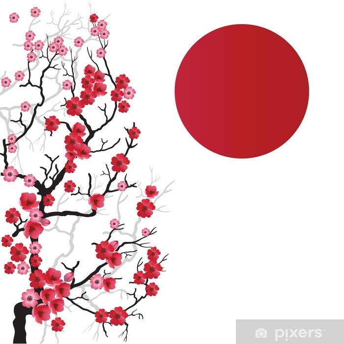 ![Сакура на фоне красного солнца]()