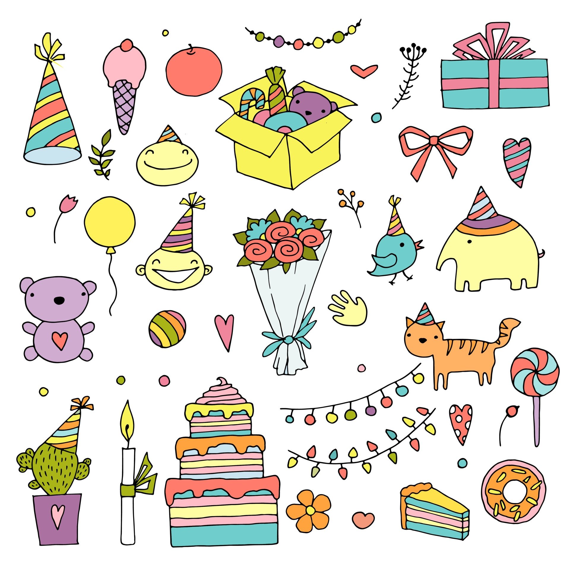 ![Атрибуты дня рождения вектор]()