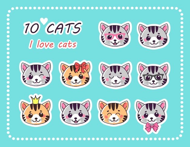 Наклейки с котиками вектор