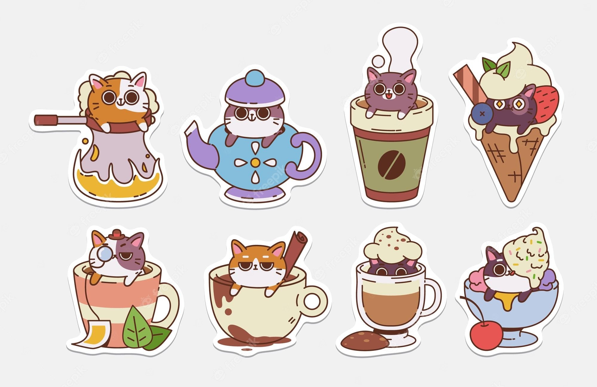 Кавайные наклейки котики