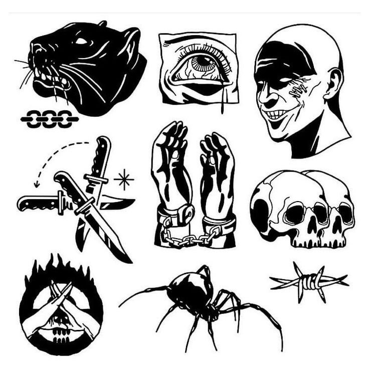 ![Черно белый олдскул тату]()