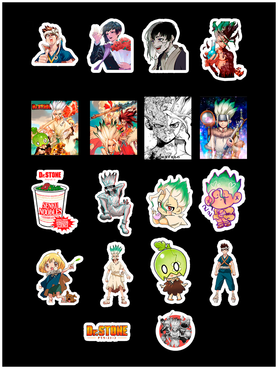 ![Dr. Stone наклейки]()
