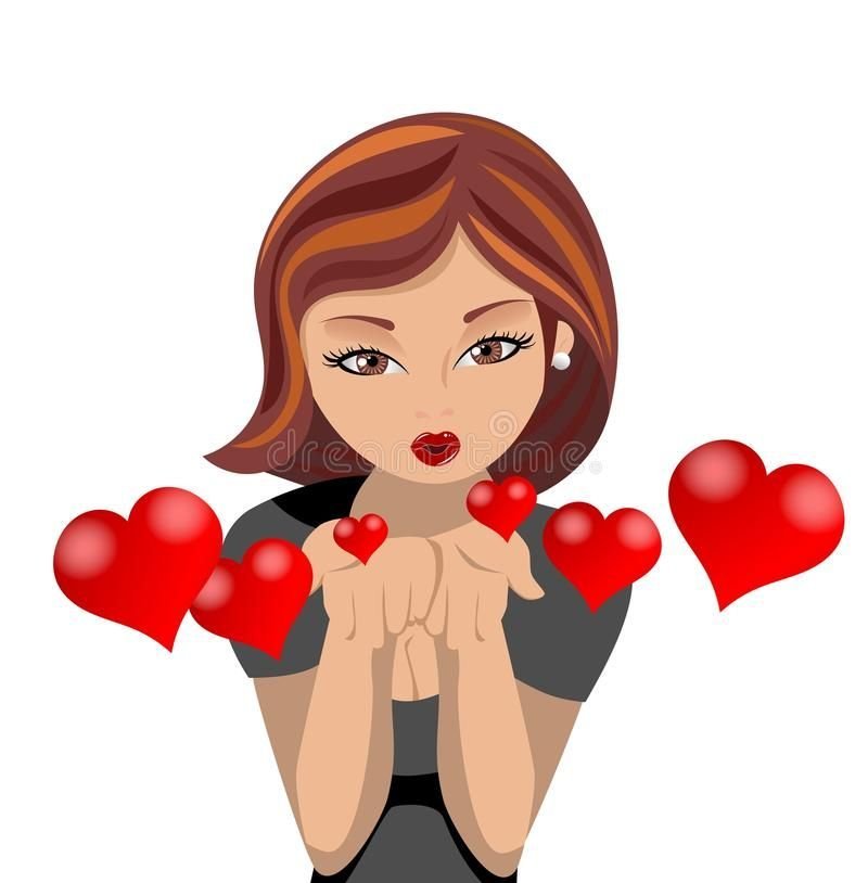 Девушка с сердечками и поцелуйчиками