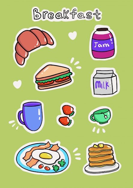 Наклейки еда завтрак