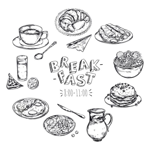 Еда на завтрак для срисовки