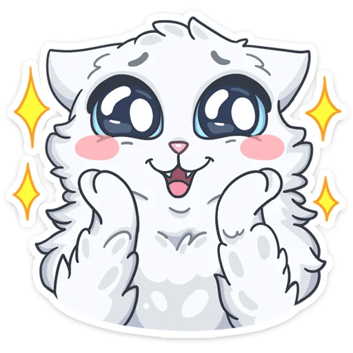 Стикеры белый кот Снежик