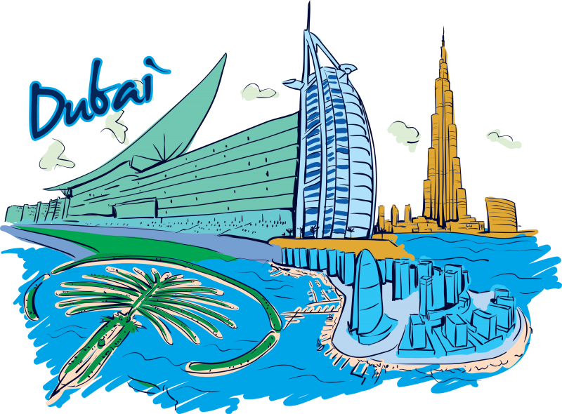 ![Эмираты достопримечательности на белом фоне]()