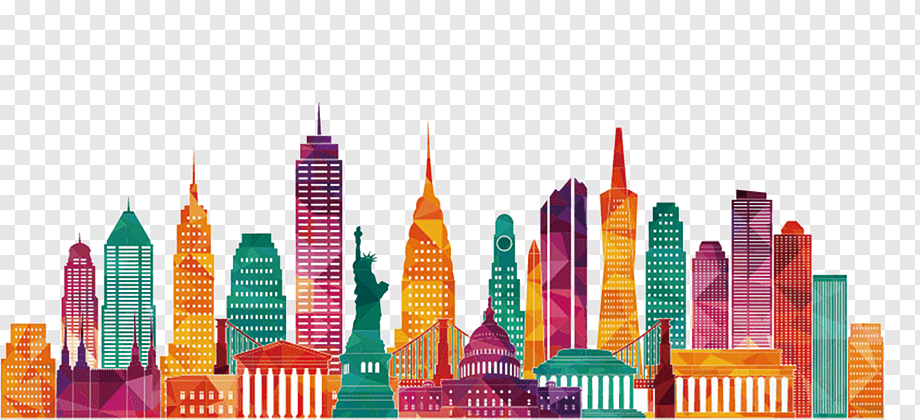 ![Яркий город силуэт]()