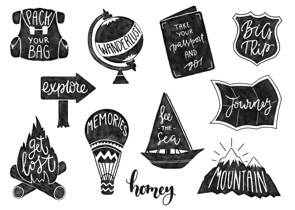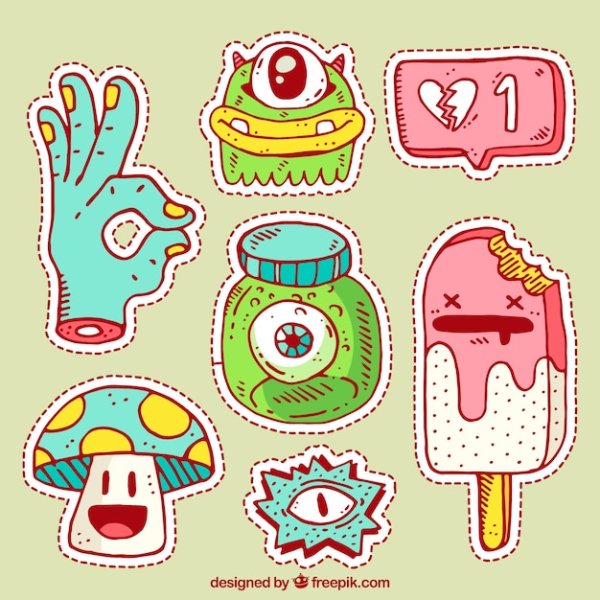 ![Стикеры стиля комиксов и стиля 90 х акварелью]()