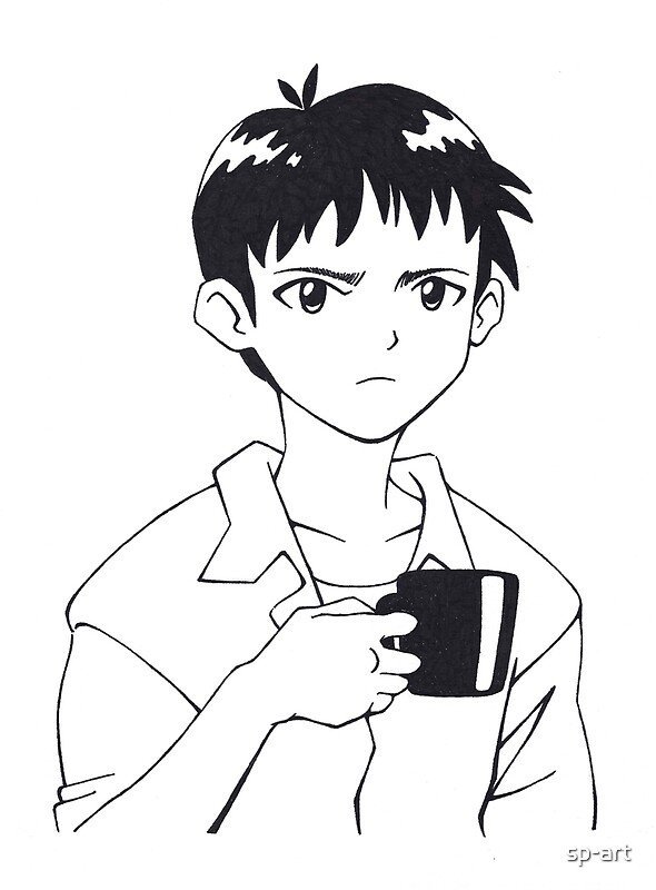 ![Евангелион Синдзи с кружкой]()