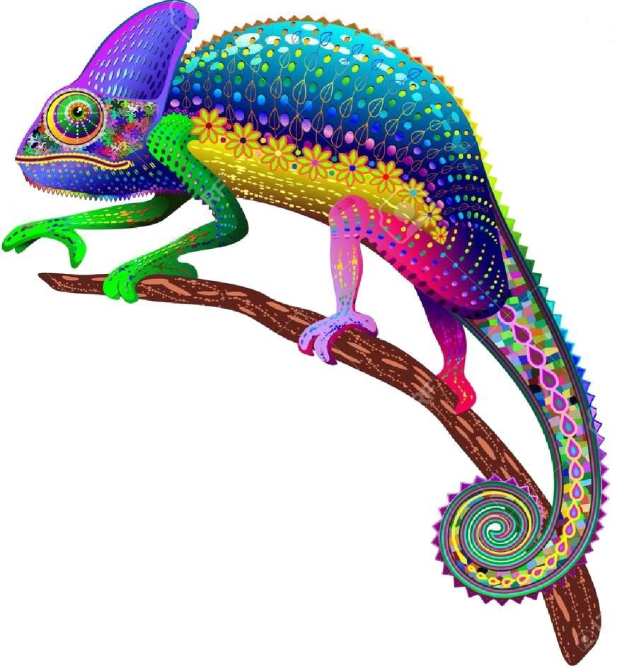 ![Радужный хамелеон на белом фоне]()