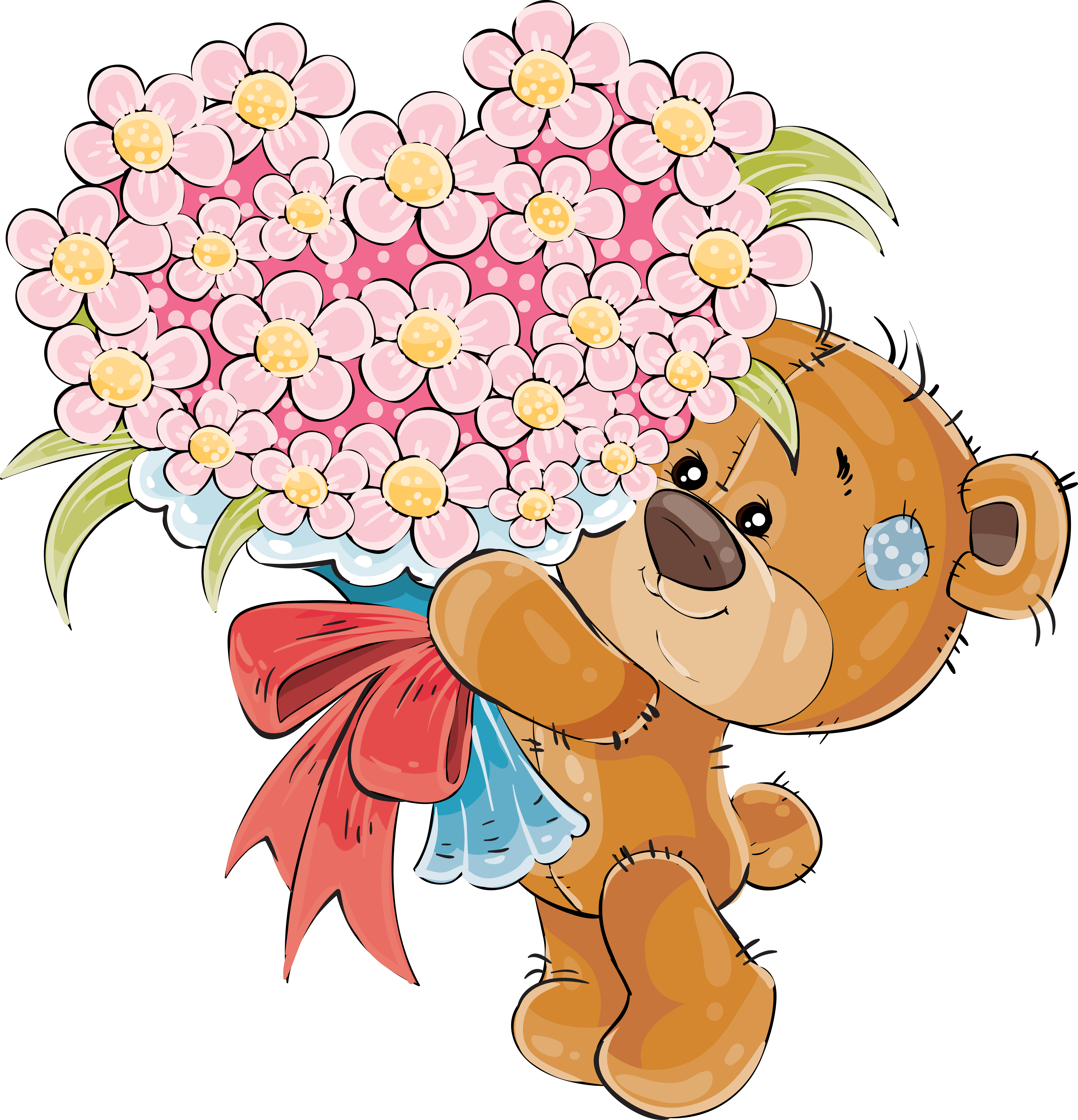 ![Медвежонок с цветами]()