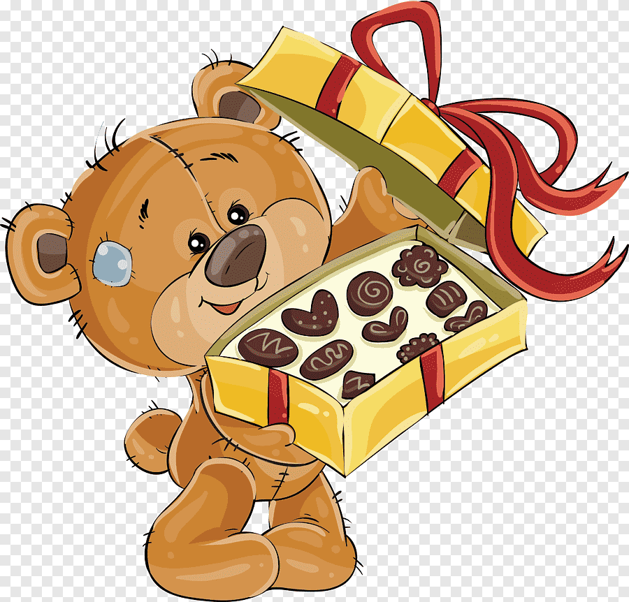 ![Медведь с подарком рисунок]()