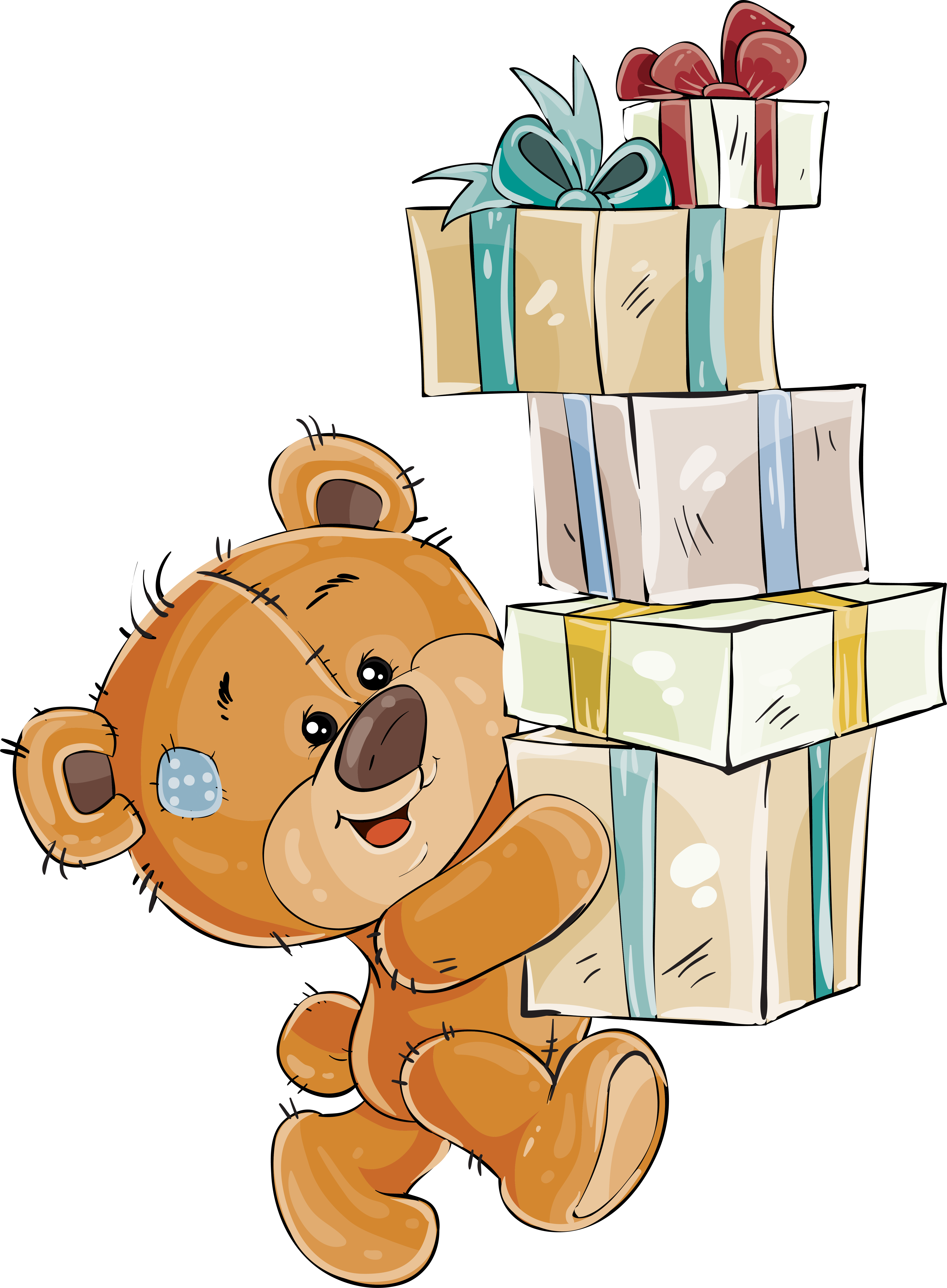 ![Медвежонок с подарками на тортике]()
