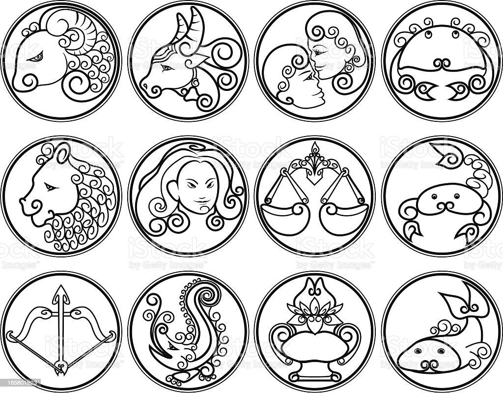 ![Знаки зодиака черно белые]()