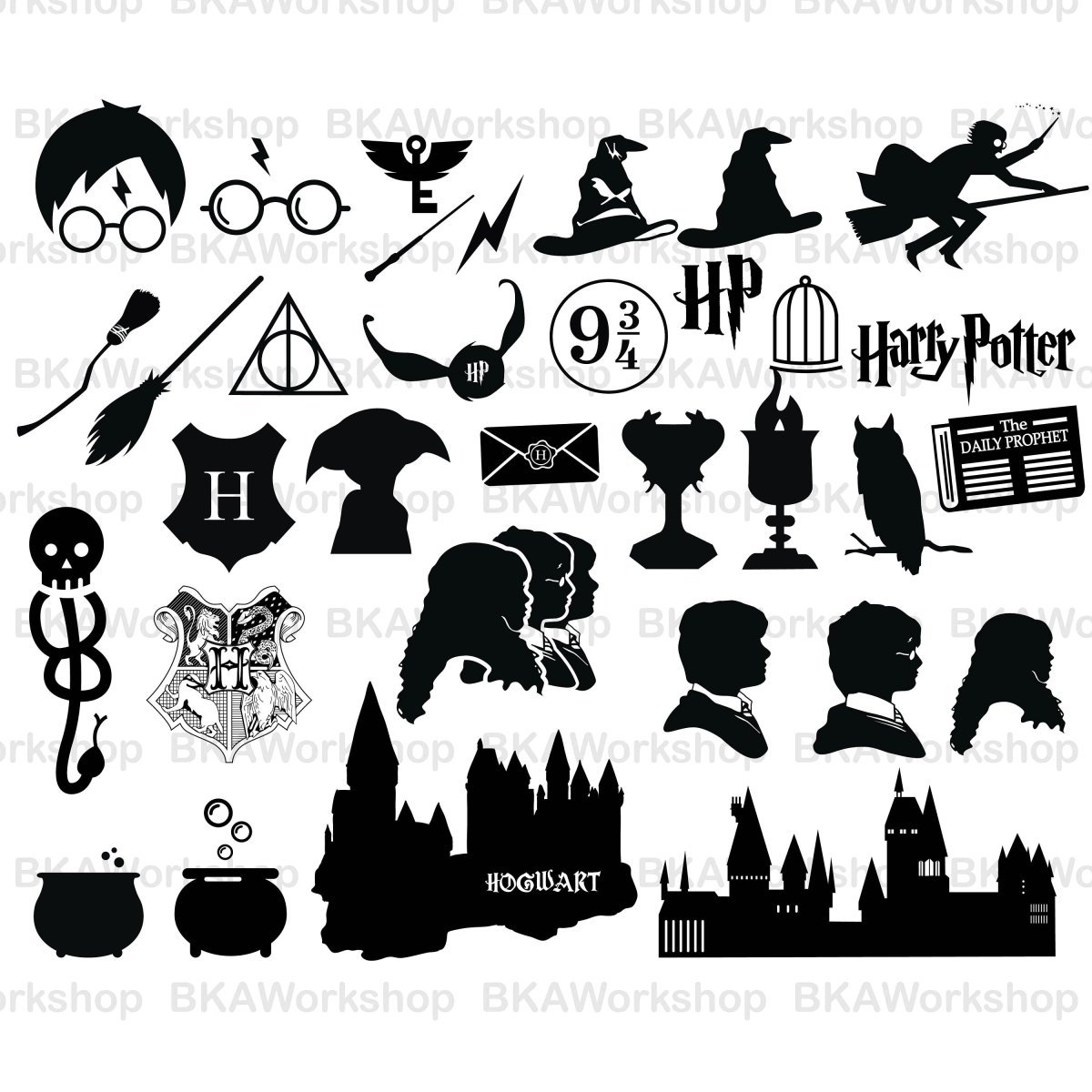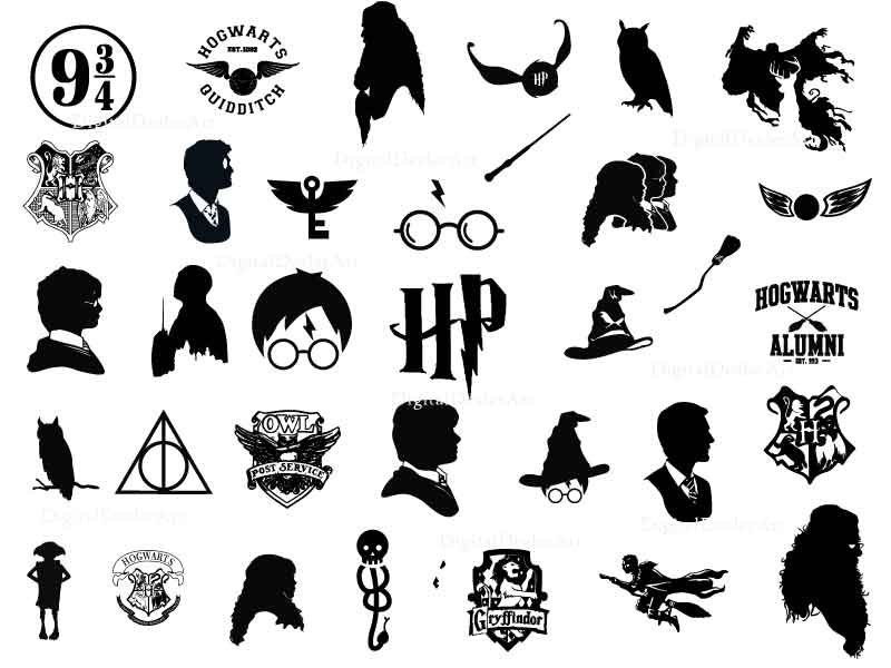 ![Гарри Поттер наклейки черно белые]()