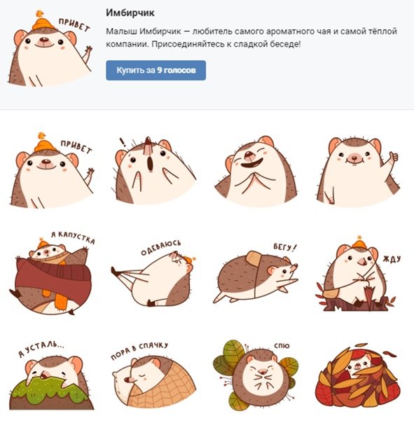 Стикеры с ежиком ВК
