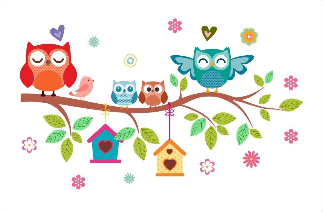 Совы мультяшные на дереве