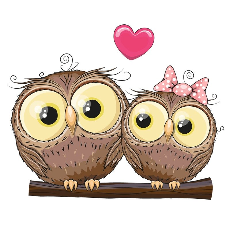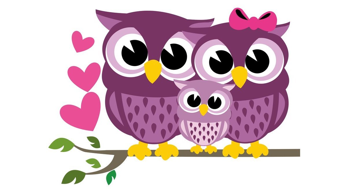 Совы на ветке мультяшные