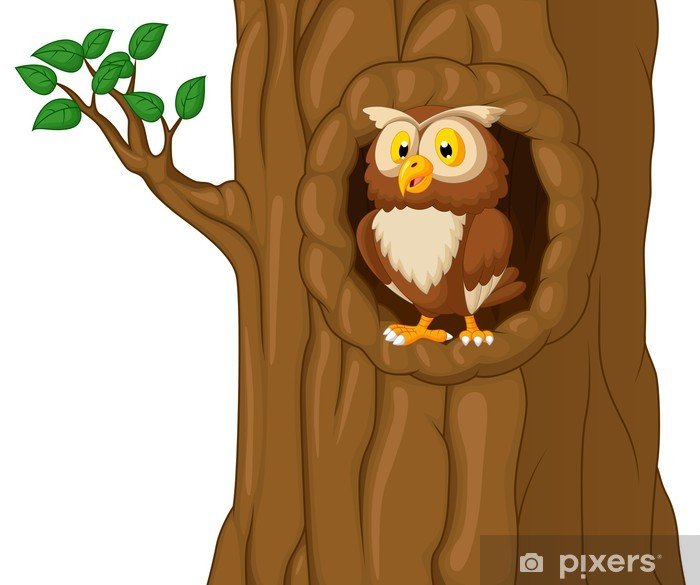 ![Совы мультяшные на дереве]()