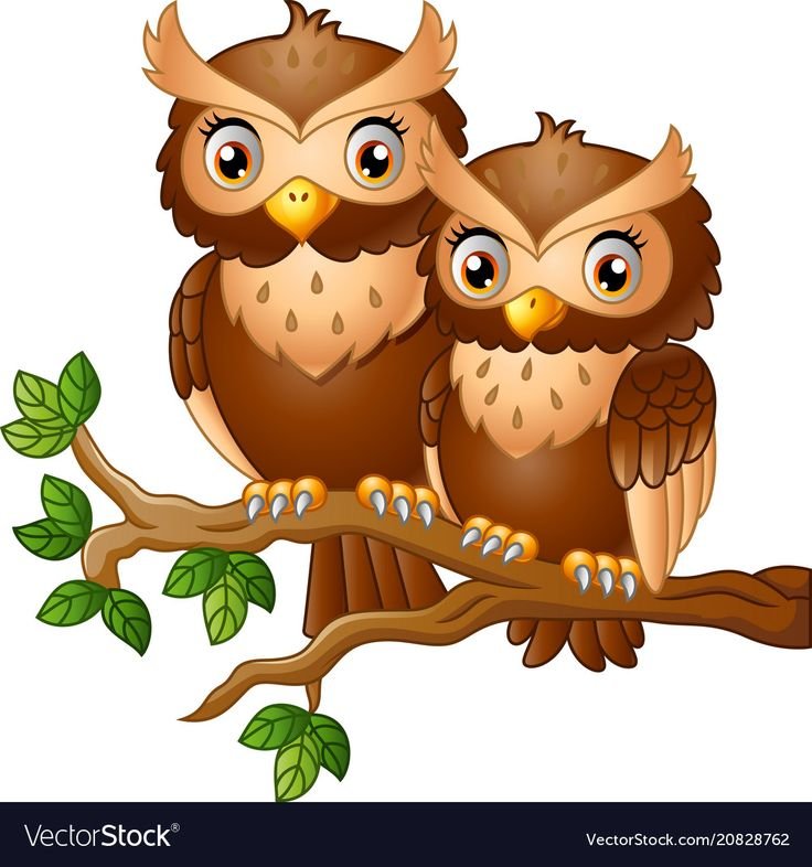 ![Совы на ветке мультяшные]()