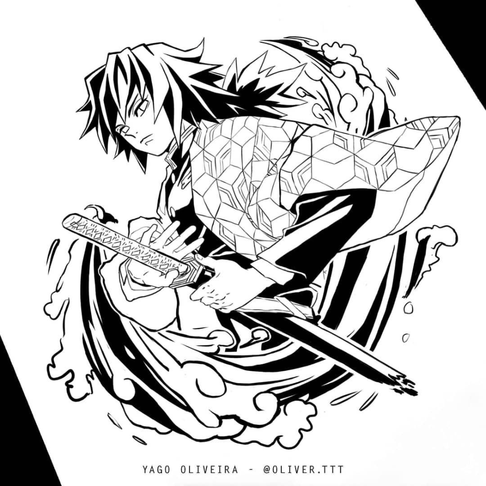 ![Клинок рассекающий демонов раскраска Ренгоку]()
